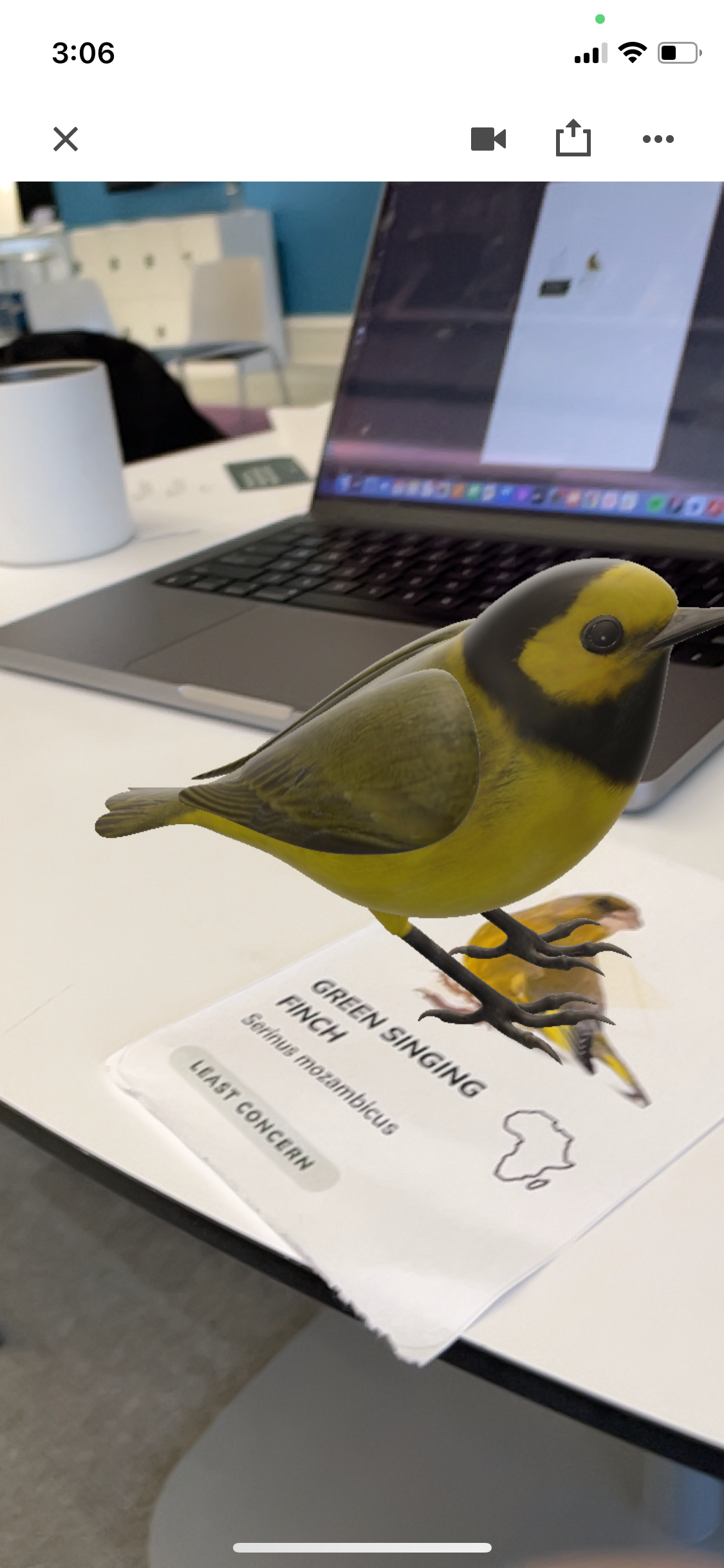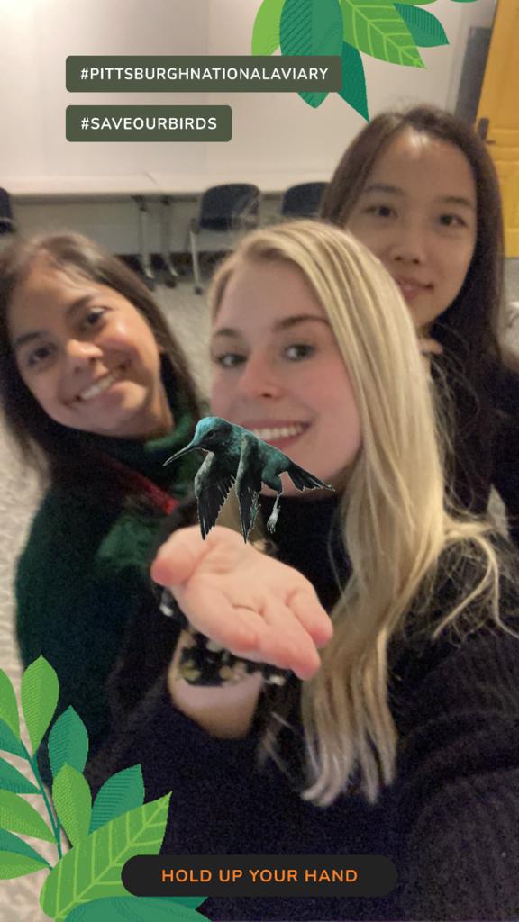 Our team had an incredible time working on this project, and our design cohort loved our demo day. By scanning the souvenir card with a phone camera, users could see a 3D bird appear in augmented reality. With our custom Instagram filter, people enjoyed interacting with the bird — letting it perch on their hands or fly around them.