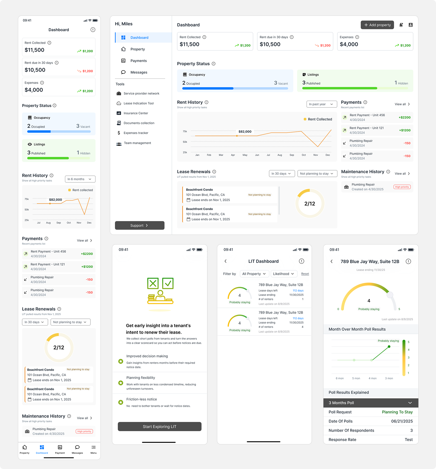 Led end-to-end renter and landlord experiences across mobile and web, translating complex workflows (property listings, payments, profiles, renter tools) into intuitive, cohesive interaction patterns.