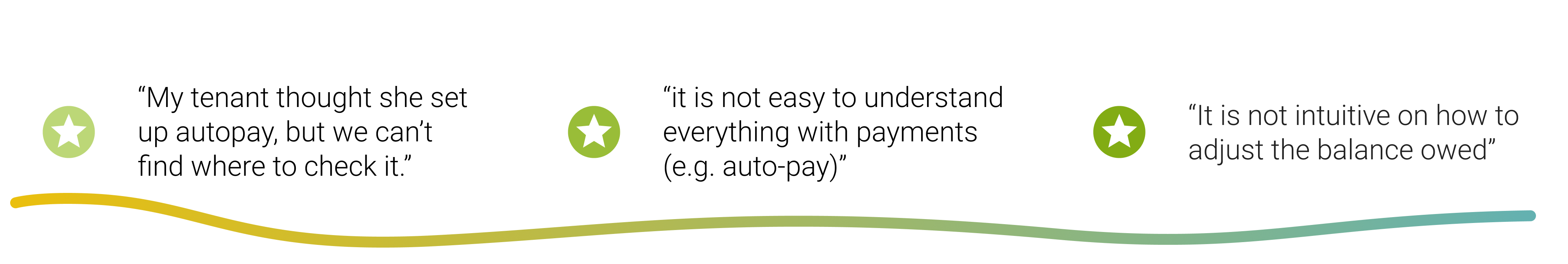 With these insights, I met with the PM and cofounder to walk through the key friction points. As we reviewed the workflows, they immediately recognized the issues as recurring themes in user complaints. This confirmed that the problems I identified aligned with long-standing feedback from both tenants and landlords: