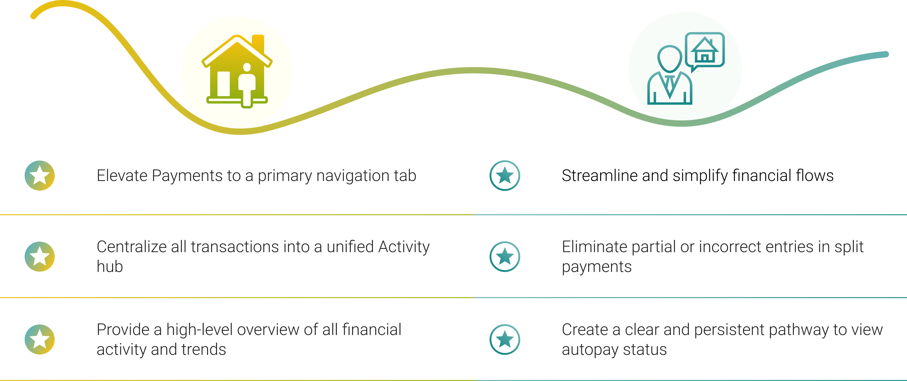 This streamlined payment flows covers main renter payments activities including pay required payment, and send money to landlord.